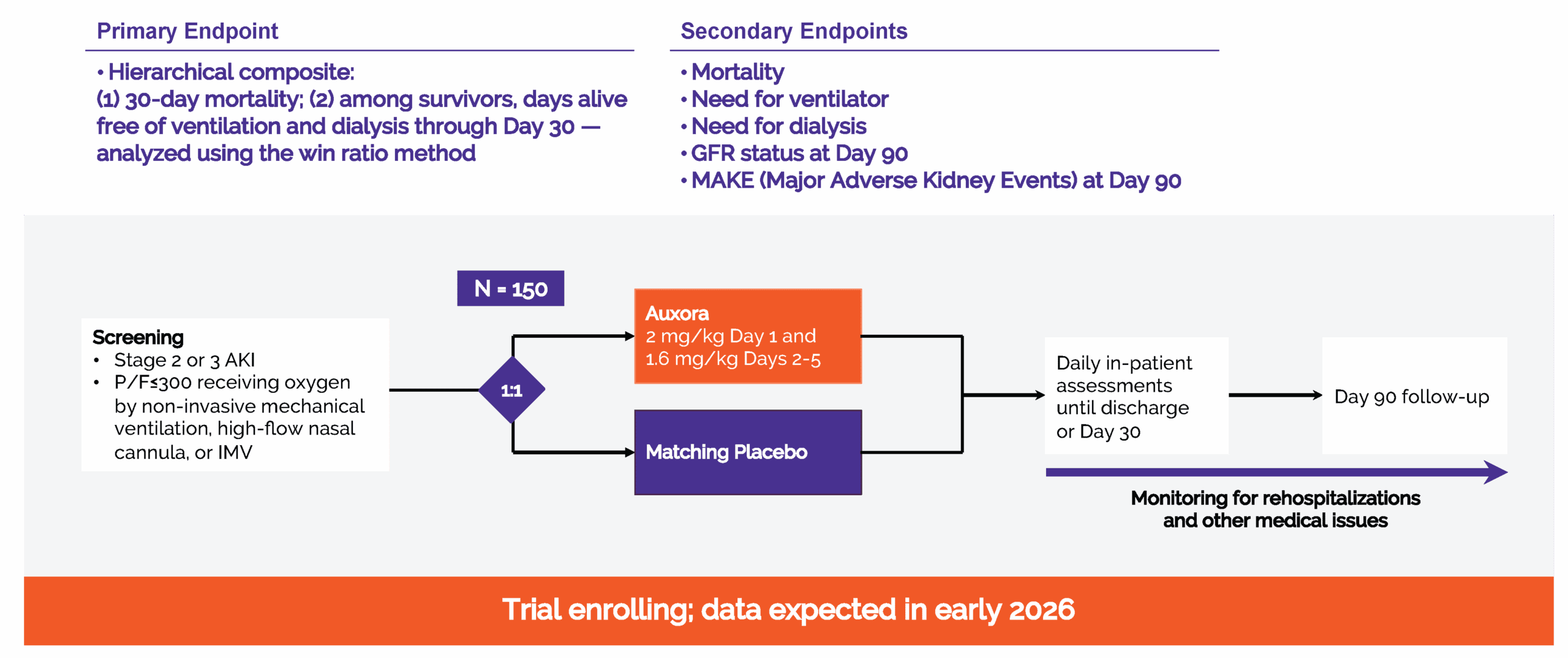 For more details on the clinical trial, please click here: A study of Auxora in Patients with Acute Kidney Injury (KOURAGE)